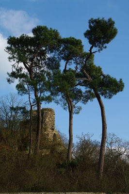 Au sommet de la colline, commence le parc du château , planté à cet endroit de pins.