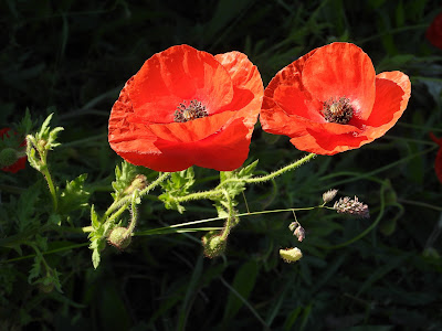 De jolis coquelicots viennent apporter un peu de couleur aux bas côtés de la route qui sépare les étangs.